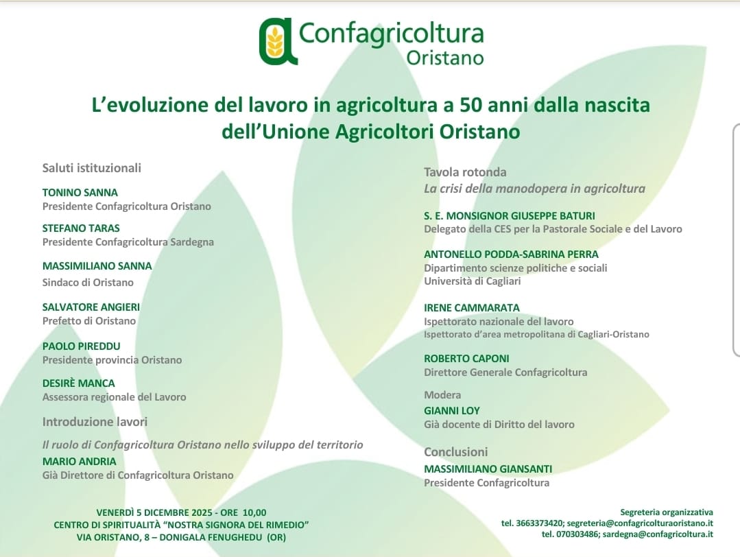 Oristano, 2 dicembre 2025 – “L’evoluzione del lavoro in agricoltura